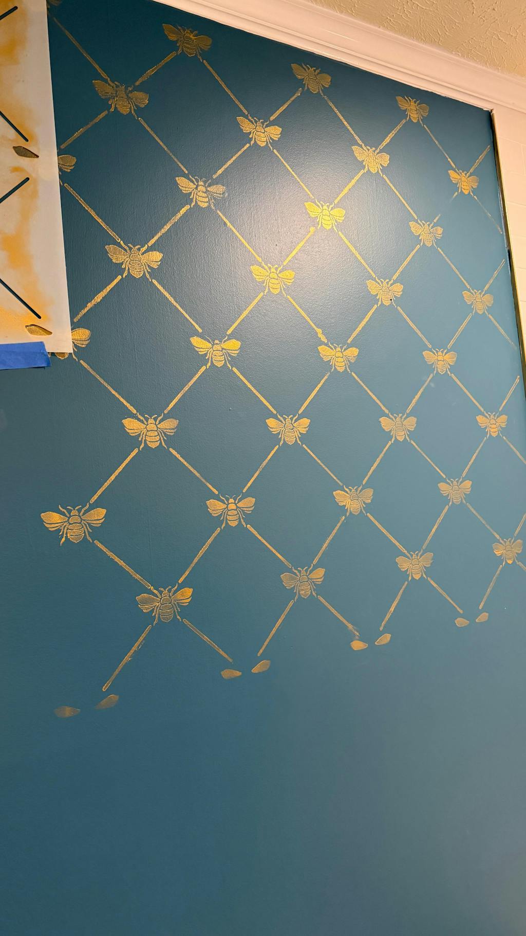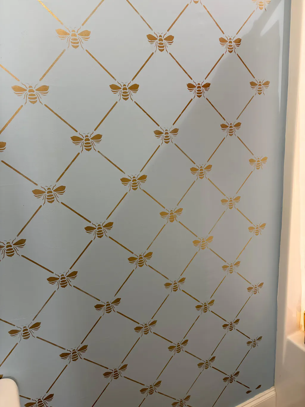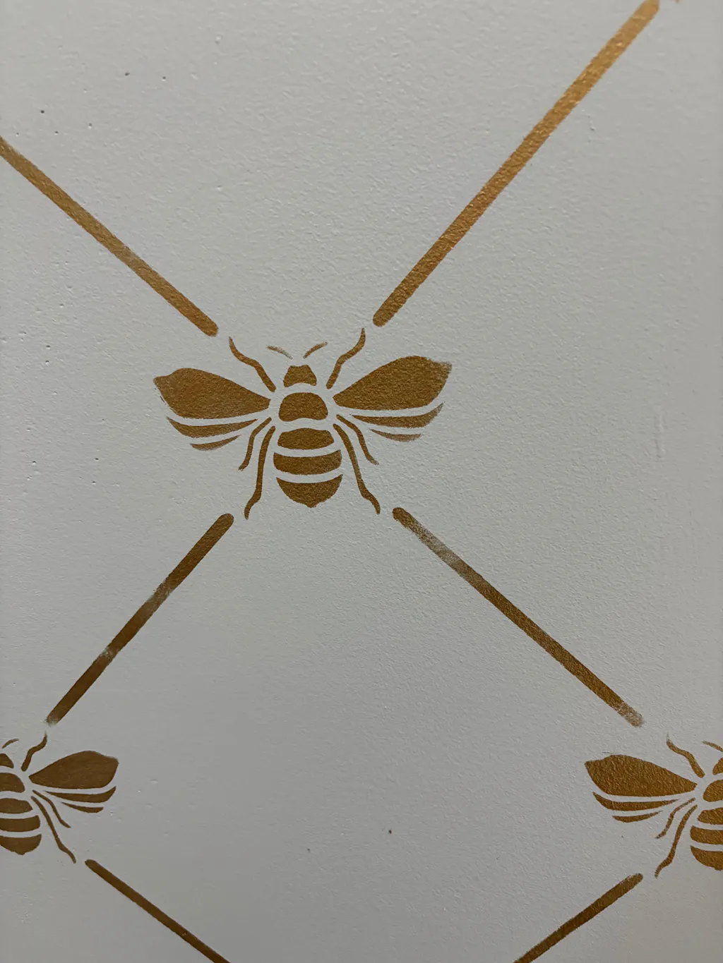 Add a touch of French elegance to your wall with our French Bee Trellis Wall Stencil. This allover damask wallpaper stencil features a classic Napoleonic Bee set in an allover trellis pattern. It's perfect for a romantic bedroom or formal dining room, OR stencil it on fabric drapes for a custom touch! Finish off the cute pattern with other bee inspired designs such as our The Buzz Allover Bee Stencil, Honeycomb Allover Wall Stencil, and Beehive Allover Furniture Stencil.