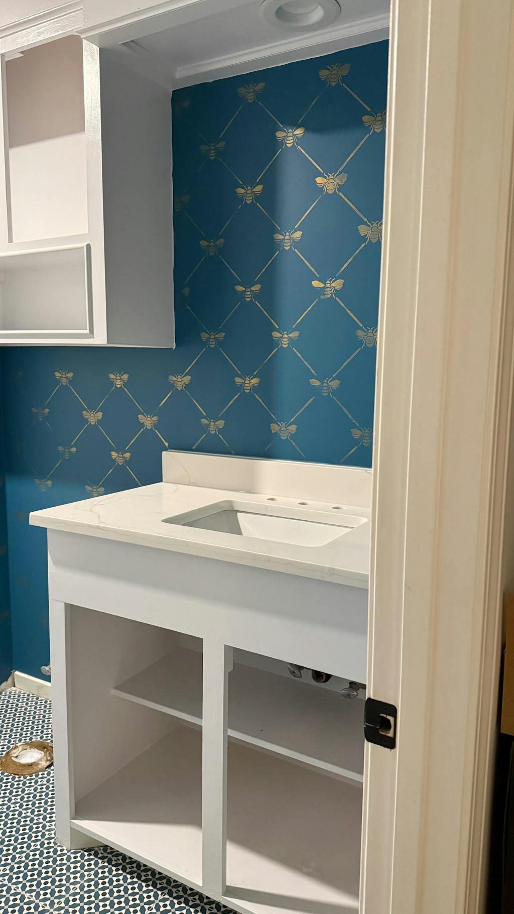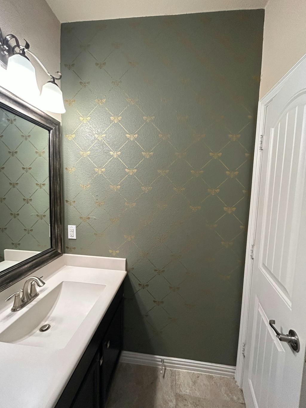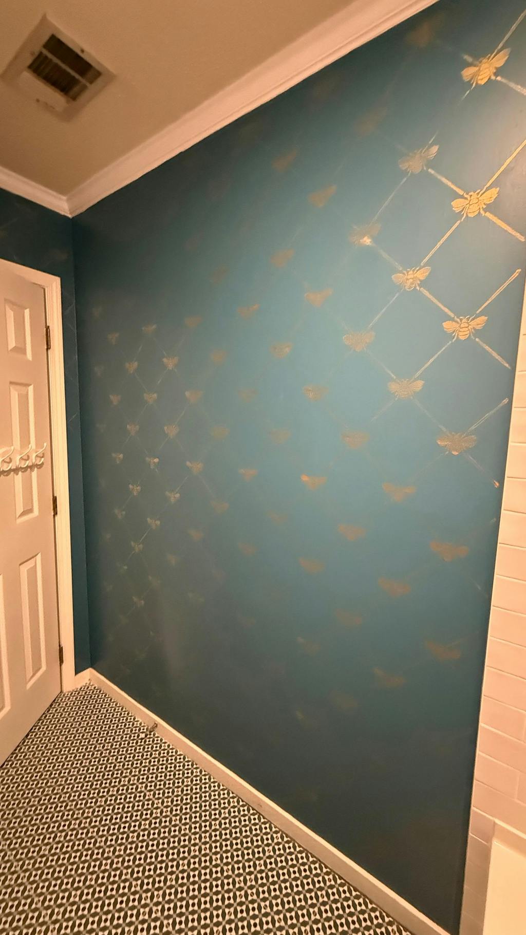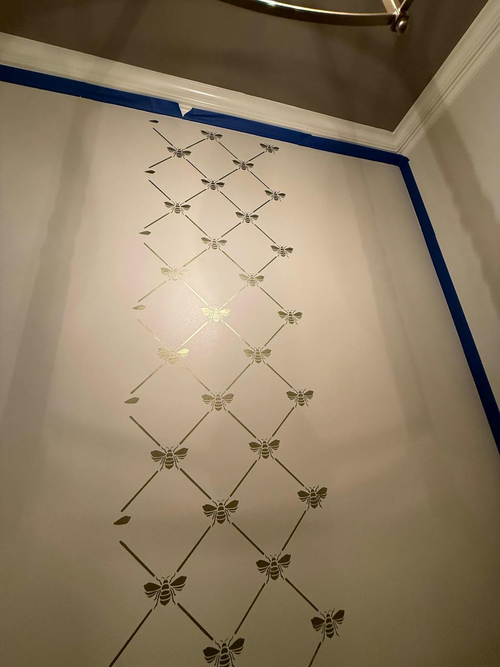 Add a touch of French elegance to your wall with our French Bee Trellis Wall Stencil. This allover damask wallpaper stencil features a classic Napoleonic Bee set in an allover trellis pattern. It's perfect for a romantic bedroom or formal dining room, OR stencil it on fabric drapes for a custom touch! Finish off the cute pattern with other bee inspired designs such as our The Buzz Allover Bee Stencil, Honeycomb Allover Wall Stencil, and Beehive Allover Furniture Stencil.